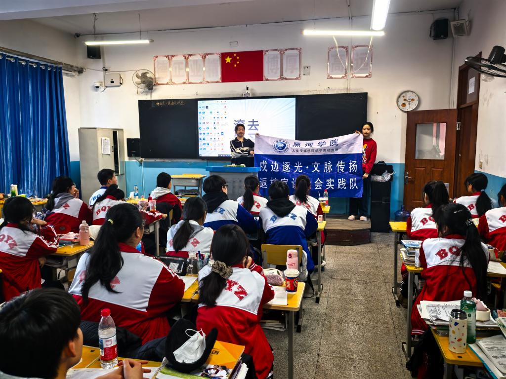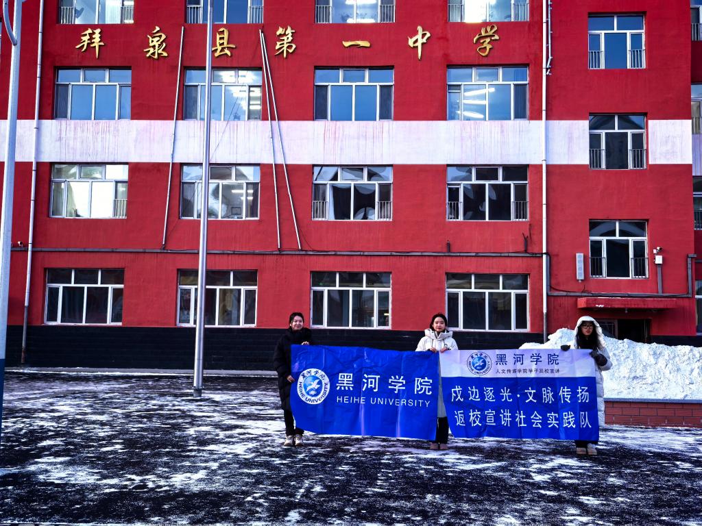 人文传媒学院2025级广播电视学班邹雨欣、李莹、殷晓雨、张美瑶4名同学组成宣讲团队,以“戍边逐光・文脉传扬”为主题,走进黑龙江省齐齐哈尔市拜泉县第一中学开展“返家乡”招生宣讲志愿服务,充分发挥专业优势搭建高校与基层中学的育人桥梁,扎实推进学校招生宣传工作落地见效。
